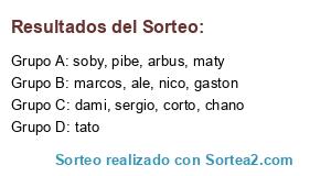 Lista de participantes: soby, arbus, ale, marcos, pibe, corto, gaston, sergio, chano, maty, dami, nico, tato.