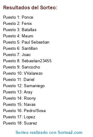 Resultados del sorteo:
