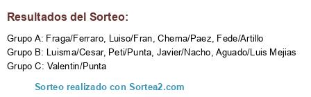 Lista de participantes: Chema/Paez, Valentin/Punta, Peti/Punta, Fraga/Ferraro, Fede/Artillo, Luisma/Cesar, Luiso/Fran, Javier/Nacho, Aguado/Luis Mejias.