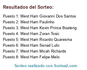 Lista de participantes: West Ham Senad Lulic, West Ham Felipe Melo, West Ham Danny, West Ham Micah Richards, West Ham Taison Barcellos Freda, West Ham Antonio Valencia, West Ham Kwadwo Asamoah, West Ham Zoran Tosic, West Ham Antonio Candreva, West Ham Paulinho, West Ham Giovanni Dos Santos, West Ham Ricardo Quaresma, West Ham Eliseu Pereira, West Ham Kevin Prince Boateng, West Ham Gianluigi Buffon, West Ham Juan Jesús, West Ham Alphonse Areola, West Ham Sandro Ramírez, West Ham Winston Reid, West Ham Nabil Fekir, West Ham Ximo Navarro, West Ham Didier Drogba.