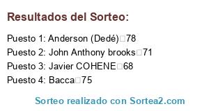 Lista de participantes: Anderson (Dedé) 78, Wellinton 77, Bacca 75, Javier COHENE 68, Jonathan Viera 74, Ogude 70, Luíz Carlos Martins Moreira 72, Cássio Albuquerque 71, Vítor Emanuel Cruz Da Silva 71, John Anthony brooks 71, CAETANO 68, Kataku Tshimanga 69.