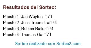 Lista de participantes: Marco Sau 76, Sebastian Rode 76, Sebastien Bassong 75, Robbin Ruiter 74, Jens Troomstra 74, Kelvin 74, Tony Vilhena 73, Mikel Van Der Hoom 73, Jacob Mulenga 72, Jan Wuytens 71, Anouar Kali 71, Thomas Oar 71.