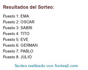 Resultados del sorteo: