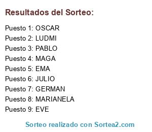 Lista de participantes: EVE, PABLO, MAGA, OSCAR, LUDMI, EMA, GERMAN, MARIANELA, JULIO.