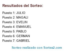 Resultados del sorteo: