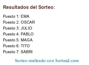 Resultados del sorteo: