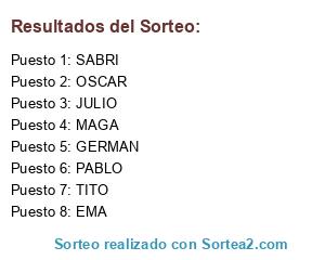 Lista de participantes: SABRI, OSCAR, GERMAN, MAGA, PABLO, TITO, EMA, JULIO.