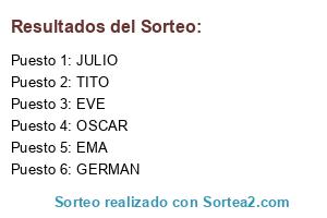 Lista de participantes: GERMAN, TITO, JULIO, OSCAR, EMA, EVE, SABRY.