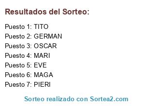 Lista de participantes: PIERI, MAGA, OSCAR, EVE, TITO, GERMAN, MARI.