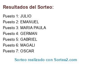 Resultados del sorteo:
