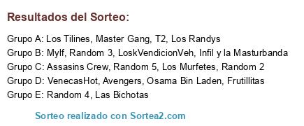 Lista de participantes: T2, Infil y la Masturbanda, LoskVendicionVeh, Las Bichotas, Los Murfetes, Mylf, Avengers, Los Tilines, VenecasHot, Osama Bin Laden, Assasins Crew, Frutillitas, Los Randys, Random 2, Random 3, Random 4, Random 5, Master Gang.