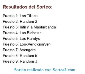 Lista de participantes: T2, Infil y la Masturbanda, LoskVendicionVeh, Las Bichotas, Los Murfetes, Mylf, Avengers, Los Tilines, VenecasHot, Osama Bin Laden, Assasins Crew, Frutillitas, Los Randys, Random 2, Random 3, Random 4, Random 5, Master Gang.