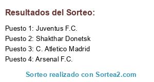 Lista de participantes: Arsenal F.C., Juventus F.C., C. Atletico Madrid, Shakthar Donetsk.