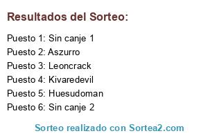 Lista de participantes: Leoncrack, Kivaredevil, Huesudoman, Aszurro, Sin canje 1, Sin canje 2.