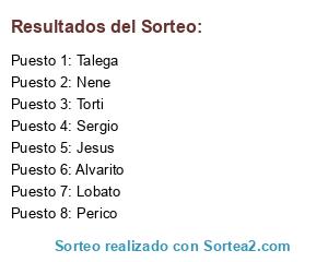 Lista de participantes: Sergio, Jesus, Nene, Talega, Alvarito, Lobato, Perico, Torti.