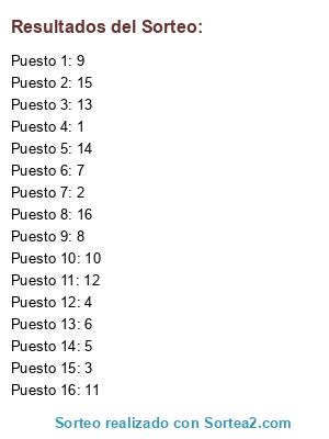 Lista de participantes: 1, 2, 3, 4, 5, 6, 7, 8, 9, 10, 11, 12, 13, 14, 15, 16.
