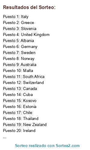 Lista de participantes: Albania, Australia, Canada, Chile, Cuba, Estonia, Germany, Greece, Hungary, Ireland, Italy, Kosovo, Malta, New Zealand, Norway, Palestine, Romania, Slovenia, South Africa, Spain, Sweden, Switzerland, Thailand, The Netherlands, United Kingdom, United States.