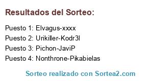 Lista de participantes: Pichon-JaviP, Nonthrone-Pikabielas, Elvagus-xxxx, Urikiller-Kodr3l.