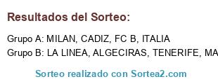 Lista de participantes: CADIZ, FC B, MADRID, ITALIA, MILAN, TENERIFE, ALGECIRAS, LA LINEA.