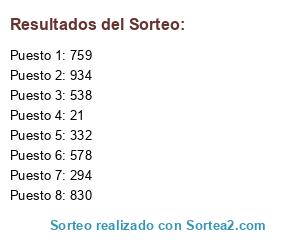 Este sorteo ha sido certificado por Sortea2. Sortea2 garantiza que: