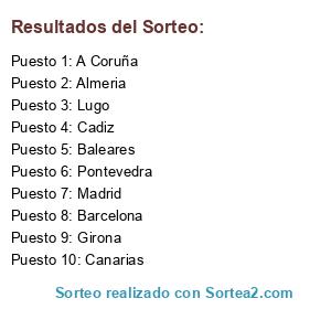 Lista de participantes: Pontevedra, Lugo, Almeria, Barcelona, Baleares, Madrid, Cadiz, Canarias, Girona, A Coruña.