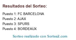 Lista de participantes: SPURS, FC BARCELONA, AJAX, BORDEAUX.