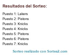 Lista de participantes: Hawks(25), Heat(14), Knicks(46), Lakers(28), Magic(23), Nuggets(36), Pistons(175).