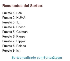 Lista de participantes: Hippie, Kyuzo, Polabo, Isi, HUMA, German, Ton, Dani, Pan, Choco.