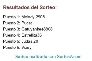 Lista de participantes: Estrellita36, Judas 20, Melody 2908, Pucat, Vixey, Gatuyankee8808.