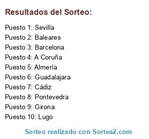 Lista de participantes: Pontevedra, Almería, Barcelona, Lugo, Girona, Cádiz, Baleares, Sevilla, A Coruña, Guadalajara.