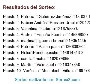 Lista de participantes: Camila Dioaz 176990341, Elizabeth Montan teran 20.325.289-7, Alex Rodrigo Ramírez Rosales 126674449, Tomás Lama 19688988-4, Alexandro Avalos 236897230, Jorge Luis Calderón julca 23254502k, Cristina Proboste maldonado 120298720, Ignacio Labrin 206556870, Diego Di salvo 28116882, Diego Di salvo 28116882, July Hernandez 132908117, Francisco Pacheco 16023445-8, Bladimir Castro 8661474-k, Isabel Chanes fierro 215155846, Israel Villouta Silva 15375246k, Lucas Impellizzieri 27931192, Maximiliano Cabrera 20809669-9, Jose luis Stuardo perez 16.766.862-3, Genaro Vera leiva 171203783, Rodrigo Escobar espinoza 172088899, paloma Zuñiga 207629642, Dayana Salazar 158817306, Michael Núñez Núñez 17280011-4, Barbara Betanzo 17.656.728-7, Barbara Betanzo nuñez 17.656.728-7, catalina jerez 20722196-1, Maximiliano alberto Rodriguez sepulveda 24081989-9, constanza Friz 19430030-1, Karim alberto Lues rojas 13544991-1, Fernanda Muñoz penacho 194456247, Denise Muñoz barrera 19699029-1, Judith Gonzalez burgos 9804629-1, Gustavo Adolfo Morales pavez 164158209, Carmen Munita Castañón 13233062k, Fernanda Espinoza 21.977.217-3, Javiera andrea Jerez vera 193064205, Isidora Pérez Soto 219688520, Jorge Jiménez Palma 21.127.464-6, Nicole Martin de ugarte 9704678-6, Jose Rojas 266465955, Sebastián Andrés Anabalón Irribarra 15.664.109-K, Natalia valeska Contreras carreño 18128426-9, Julieta Díaz Cabezas 19541517k, German eliasaf Vasquez Contreras 155152907, Edmundo Quezada chavez 18557040-1, Ronald Abalos 13672339-1, SERGIO ENRIQUE MULLER BURGOS 17.768.608-5, Yohanna Salazar 136036432, Yohanna Salazar anfossi 136036432, Camila Andrade santana 182770442, Ingrid Aros Puebla 14053635-0, Javiera Sandoval Requena 20237994k, Javiera Izquierdo Gómez 204648522, Cynthia Araya panes 70405598, Hellen Vanessa Reyes Benavente 171553415, Fabiola Ramírez 155988827, Noelia Soledad Parra sepulveda 163921634, Cristina Seguel Barrientos 161016233, Francisco Torres 13276918-4, Kelly Cayetano 23538342k, Pablo Andrades vidal 19573044k, Sofía Rebolledo Contreras 22644207-3, Hissaris Arraño 221915763, Santiago Alonso 162126725, Alejandro Moya 8967878-1, Vaithiare Blanch Rivera 11846713-2, francisco Mac-Donald 15379264k, Daniela Bize campos 13996904-9, Carlos Daniel Luciani 18571580, Antonieta Mena meza 103513375, Catalina Ibañez ahumada 191523520, Alejandra Marquez 141707396, Ignacia Belén Amenábar Castillo 20858584-3, Belén Umaña Cofré 18706021-4, Ricardo Sandoval 160724722, Fernanda De la fuente arakaki 22043701-9, Patricia Gutiérrez Jiménez 13.037.656-8, Jesús jordano Ojeda Avariano 27.474.383-2, Valentina Ojeda Olguin 181726679, consuelo siede riveros 204420890, Estefanía Ponce 204029938, Karen Uribe 172543946, Marcela Soto 134567589, Carolina Ortiz 16.109.495-1, Manuela Henriquez olate 13963342-3, Valentina Ortega acevedo 18.861.799-9, Daniela Alcaino perez 16662206-9, Cristian AGUILAR SILVA 167968309, Daniel Castro 15.930.601-1, Maria Arce 8196920-5, Maria Edith De la fuente orellana 180072446, Maria Edith De la fuente orellana 18.007.244-6, Maria Edith De la fuente orellana 18.007.244-6, Maite Wittwer 216468368, Maria jose Pino 18249199-3, Támara lopez 15.548.492-6, Macarena Aguilera jara 18.948.864-5, Carmen Cruz alva 23831948k, Lucia Sepúlveda Sepúlveda 19.619.836-9, Jessica Grez 17154915-9, Jorge Jaramillo 21843986-1, catalina soto flores 165539168, María laura Portaluppi 247864148, Carlos hernan Muñoz Rodríguez 15511828-8, Yasna Sepulveda 11616129k, Francisca Bernal Pavez 180589910, Karen paola Soto neira 21508252-0, Yael Mamianetti Gutierrez 20.342.285-7, Scarlet Henriquez ferias 19439225-7, Andres Jaramillo Oyarzun 190395790, Yanara Troncoso 182751243, Maria Prudencio 22.496.694-6, Tiare Abarca Sánchez 200249283, Guillermina Sánchez herrera 108639164, Cecilia Rosas Baeza 10626883-5, Catalina Arriagada rosales 2106$822-0, Miguel Angel Vasquez Morales 12.874.366-9, Silvana Elizabeth Elgueda Martinez 12.270.679-6, Alonso Bustos ovalle 211906596, Francisca Bustos ovalle 215910814, Aram Meza aguilera 21.394.559-9, Javiera Alejandra Diaz Delzo 21222832-k, Rocio Salazar 192934400, Francisca Espinoza 177798193, Tamara Saez marambio 16739804-9, Ambar Leiva parejas 21656838-9, Edith Araya muñoz 17.441.739-3, Maria julieta Galaz soto 15.497.240-4, Leslie Beltran 152119550, Gloria Azúa Martinez 13767656-7, Patricia Rojas Rojas 12.316.081-9, Vania jhasmila Muñoz Portuguez 256030098, Jenny Barrientos Pailamilla 152984081, Fernando guillermo Rubio serrano 195510792, Javiera Stephanie Pino diaz 19.238.386-2, Javiera stephanie Pino diaz 19.238.386-2, Danae Araneda velasquez 215582531, Guisela Peñaloza 13428693-8, Francisco Medel 16140546-9, Ingerbol Acosta 137659034, DAVID MARIO Alberto alave 16.227.155-5, Carolina Mendez Figueroa 18079329-1, Martin Montecinos 23013930k, Amacxy Fernanda López Carvajal 20410907-9, Amacxy Fernanda López carvajal 204109079, Amacxy fernanda López Carvajal 20410907-9, Sebastian Olivares Jara 16.640.295-6, Nicolás ignacio Henríquez canobra 19.540.462-3, Benjamin Cárdenas 19.539.723-6, Benjamin Cárdenas 19.539.723-6, Vicente Litvak 18.638.694-9, Denisse Mariette Neveu Eyzaguirre 169187169, Javiera Correa arancibia 198321486, Genesis Constanza Ramirez castro 19818627-9, Jacqueline Pizarro Roa 13.475.216-5, Anais Medina Jimenez 13783011-6, Simon Aguirre sanchez 204243050, Camila Sepulveda Saldivia 22237335, Antonia Beltrán mánquez 18.942.947-9, Diego Kondor alarcon 174873577, Yohana Contreras 279385845, Sergio Novoa contreras 20.420.390-3, Delfa georgina Muñoz garrido 136809814, Fernanda Cornejo 233170062, Karina Ponce 178200887, Rosa Galarce Galarce 14.439.955-2, Marcos Villegas 98251987, Felipe Robles 163797976, Antonia Briones aldea 21 898 812 1, Pablo ignacio Quezada aguirre 19605855-9, Alexandra Rangel Rendon 267420505, Alexandra Rangel Rendon 267420505, Sebastian Flores Flores 157417061, Martina Gonzales osorio 231390987, Catalina Muñoz Aba