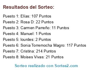 Lista de participantes: Cristina: 214 Puntos (214), Jose Gabriel Melero: 214 Puntos (214), Antonio Santiago Martínez: 214 Puntos (214), Sonia Torremocha Magro: 117 Puntos (117), eva maria sanchez campos: 110 Puntos (110), María José: 109 Puntos (109), Magdalena: 109 Puntos (109), Matias Sanchez: 108 Puntos (108), miguel angel: 107 Puntos (107), M. Sánchez G.: 107 Puntos (107), pedro: 107 Puntos (107), Elías: 107 Puntos (107), Sylvia Petite: 107 Puntos (107), Jose Martinez: 96 Puntos (96), jose andujar: 44 Puntos (44), Rosa D: 22 Puntos (22), Janeth Lino Cáceres: 22 Puntos (22), Moises Vivas: 21 Puntos (21), RafaOB: 20 Puntos (20), laura: 20 Puntos (20), juan Antonio: 15 Puntos (15), Jose Angel Martínez Carreño: 13 Puntos (13), Carmen Parreño: 11 Puntos (11), María Soledad López Molina: 10 Puntos (10), Elvira: 10 Puntos (10), Jenni: 10 Puntos (10), Irene: 10 Puntos (10), José Blas Sánchez Pérez: 10 Puntos (10), Antonio bermudez sanchez: 9 Puntos (9), Mari Carmen Pérez: 9 Puntos (9), Alejandro: 9 Puntos (9), Llanos: 9 Puntos (9), iratxe: 8 Puntos (8), Inma Chumillas Fernández: 7 Puntos (7), Rubén: 7 Puntos (7), Manuel Salvador: 7 Puntos (7), María José López vela: 7 Puntos (7), Rosa: 7 Puntos (7), Raquel: 7 Puntos (7), Alberto Escribano Cantos: 6 Puntos (6), Francisco Javier: 6 Puntos (6), ANA: 6 Puntos (6), Ana Belén: 6 Puntos (6), Rami: 6 Puntos (6), pepe: 6 Puntos (6), Regina: 6 Puntos (6), Vicente: 6 Puntos (6), Francisco Forna Garcia: 6 Puntos (6), sonia: 5 Puntos (5), J.A.S.P: 5 Puntos (5), Julián Núñez Rueda: 5 Puntos (5), Rodrigo: 5 Puntos (5), chumy: 5 Puntos (5), Cristina: 5 Puntos (5), Carlos Abellan: 5 Puntos (5), Joseba: 5 Puntos (5), Maximiliana Martínez López: 5 Puntos (5), Antonio: 5 Puntos (5), Noemi: 4 Puntos (4), Melen: 4 Puntos (4), Oscar Vicente Bretones: 4 Puntos (4), javier: 4 Puntos (4), Ana Rocio: 4 Puntos (4), leonardo Alberto Martínez: 4 Puntos (4), Francisco González: 4 Puntos (4), Alba: 4 Puntos (4), MPaz: 4 Puntos (4), Nuria: 4 Puntos (4), Vanesa: 4 Puntos (4), Antonio Lacasa: 4 Puntos (4), Laura Sánchez: 4 Puntos (4), Lucia: 4 Puntos (4), Jesus: 4 Puntos (4), Juan Carlos Muñoz cebrian: 4 Puntos (4), ruben sanchez: 4 Puntos (4), @aya, Doris: 4 Puntos (4), Karina Requena: 4 Puntos (4), César Sánchez Gómez: 4 Puntos (4), Michael Bublies: 4 Puntos (4), Victor: 4 Puntos (4), Luis Miguel Lerin Cano: 4 Puntos (4), @ras, David: 4 Puntos (4), Lucía: 4 Puntos (4), Silvia: 3 Puntos (3), Marisa Cano Abellán: 3 Puntos (3), Francisco Madrigal Rubio: 3 Puntos (3), Paula: 3 Puntos (3), David Apio Martínez: 3 Puntos (3), Carolina Cucarella Garrido: 3 Puntos (3), Susana Quilez: 3 Puntos (3), maria: 3 Puntos (3), Rocio: 3 Puntos (3), Raquel: 3 Puntos (3), Isabel Huedo Rodenas: 3 Puntos (3), Victoria Eugenia Herrero Martínez: 3 Puntos (3), Maria: 3 Puntos (3), Miguel Ángel: 3 Puntos (3), Jose Javier García Ramirez: 3 Puntos (3), Francisco Javier: 3 Puntos (3), Cristina Sainz Bernabéu: 3 Puntos (3), Carlos: 3 Puntos (3), ELENA: 3 Puntos (3), Enrique: 3 Puntos (3), Antonio Jesús monedero Marín: 3 Puntos (3), Esther m: 3 Puntos (3), María Sánchez Sánchez: 3 Puntos (3), Marta: 3 Puntos (3), antonio: 3 Puntos (3), David Cañamares López: 3 Puntos (3), Antonio Perez: 3 Puntos (3), Lau: 3 Puntos (3), blanca Jiménez narin: 3 Puntos (3), Rafa Merino: 3 Puntos (3), Nuria OA: 3 Puntos (3), Vanesa Garrido romero: 2 Puntos (2), Carolina: 2 Puntos (2), Héctor: 2 Puntos (2), Laura: 2 Puntos (2), Sara B: 2 Puntos (2), Marta: 2 Puntos (2), Carlos Hidalgo Lorenzo: 2 Puntos (2), Miriam: 2 Puntos (2), Araceli: 2 Puntos (2), Eduardo: 2 Puntos (2), Almudena: 2 Puntos (2), Jaime García Algaba: 2 Puntos (2), lourdes: 2 Puntos (2), Carlos Roberto: 2 Puntos (2), Ainoa: 2 Puntos (2), Isabel Tortola Segovia: 2 Puntos (2), Esther: 2 Puntos (2), Ramón Garrido Rodríguez: 2 Puntos (2), María: 2 Puntos (2), Angel: 2 Puntos (2), sira: 2 Puntos (2), Juan Carlos Elices: 2 Puntos (2), Eduardo Simón: 2 Puntos (2), Cristóbal: 2 Puntos (2), Moisés Pont Mozo: 2 Puntos (2), alfonso: 2 Puntos (2), Javier Valle: 2 Puntos (2), david: 2 Puntos (2), Paula Igualada Muñoz: 2 Puntos (2), Francisco Javier Martínez Solera: 2 Puntos (2), Jose Martinez: 2 Puntos (2), Loreto: 1 Puntos (1), Marisa: 1 Puntos (1), Fernando: 1 Puntos (1), Francisco Javier Pérez: 1 Puntos (1), Paloma: 1 Puntos (1), dunia: 1 Puntos (1), Alejandro Martínez: 1 Puntos (1), Manuel: 1 Puntos (1), Eva: 1 Puntos (1), Cliente2: 1 Puntos (1), Carlos Arjona Lluch: 1 Puntos (1), Alfonso: 1 Puntos (1), María Ángeles Núñez: 1 Puntos (1), Sofia picazo: 1 Puntos (1), Fran Hernández: 1 Puntos (1), Rocío: 1 Puntos (1), Jose Manuel Martínez: 1 Puntos (1), Arsenio: 1 Puntos (1), Edd: 1 Puntos (1), Cristina Alfaro: 1 Puntos (1), Óscar Fuentes: 1 Puntos (1), Ana Fideu: 1 Puntos (1), Verónica: 1 Puntos (1), Mari Carmen Iniesta: 1 Puntos (1), Luisea: 1 Puntos (1), Samuel Pérez Cebrian: 1 Puntos (1), Alejandro Navarro González: 1 Puntos (1), Antonio: 1 Puntos (1), Raquel: 1 Puntos (1), maria: 1 Puntos (1), MARIA: 1 Puntos (1), Jose Joaquin de Haro: 1 Puntos (1), MCarmen López Villar: 1 Puntos (1), Cristina Matías: 1 Puntos (1), Pedro Jiménez garcía: 1 Puntos (1), Rubén: 1 Puntos (1), Iris: 1 Puntos (1), La Serra: 1 Puntos (1), Marina O: 1 Puntos (1), Manu: 1 Puntos (1), María: 1 Puntos (1), Raul Ibañez: 1 Puntos (1), Rous: 1 Puntos (1), David Cifuentes: 1 Puntos (1), Óscar Gómez Muñoz: 1 Puntos (1), andres: 1 Puntos (1), Benito Ismaél: 1 Puntos (1), Sonia: 1 Puntos (1), David Henares: 1 Puntos (1), Nuria García Simón: 1 Puntos (1), Gabriel: 1 Puntos (1), María Dolores Gómez Tebar: 1 Puntos (1), @20, Nazaret: 1 Puntos (1), Gasto: 1 Puntos (1), Nieves de Jesús Lacasa Morote: 1 Puntos (1), joaquin charcos: 1 Puntos (1), Juan: 1 Puntos (1), Yolanda: 1 Puntos (1), Juan Carlos: 1 Puntos (1), Petri García Cervigón: 1 Puntos (1), Mariló: 1 Puntos (1), Gabriel Bastardi Ros: 1 Puntos (1), Marta Rodrí
