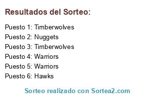 Lista de participantes: Grizzlies(24), Hawks(35), Knicks(33), Nuggets(30), Timberwolves(38), Warriors(28).