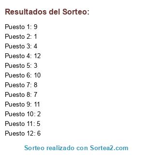 Lista de participantes: 1, 2, 3, 4, 5, 6, 7, 8, 9, 10, 11, 12.