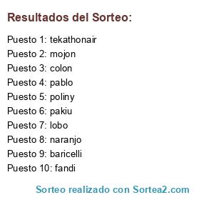Lista de participantes: pakiu, naranjo, fandi, lobo, poliny, baricelli, pablo, colon, tekathonair, mojon.