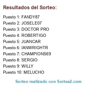 Lista de participantes: DOCTOR PRO, JOSELE07, CHAMPIONS69, IANWRIGHTR, WILLY, JUANCAR, MELUCHO, SERGIO, FANDY87, ROBERTIGO.