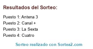 Lista de participantes: Antena 3, Cuatro, La Sexta, Canal +, Canal + Liga, Gol Television.