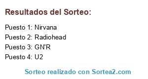 Lista de participantes: Nirvana, Radiohead, U2, GN'R.