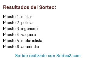 Lista de participantes: policia, amerindio, ingeniero, militar, motociclista, vaquero.