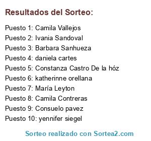 Lista de participantes: Rommy Castillo Toloza, Maria Ávila Sánchez, Marcia Rubilar Muñoz , francisco fuentealba hermosilla, Francisca Ortiz Candia , Mitzi Gonzalez , Daniela Vasquez , Cristian Contreras , Maricel Díaz Perez , Claudia Suazo Ruiz, José Cisternas Chandia , Rosario Parra Zapata , Damaris Aguayo Castillo, Daniela Osorio Perez, Damari Castro Muñoz , Yocelin Morales Aravena , Marcelo Palma Navarrete , Francisco Cadiz Villalobos , Fabiana Vergera , Tamara Moya Moya , Lorena Lagos , Verónica de la Torre , Victoria Marillán Romero , Barbara Muñoz , Mario Bravo Cofré , Jonatan Burgos G, Constanza Vejar , Yesenia Espinoza , Fridam Cartes Molina, Danitza Ruiz Inostroza , Daicy Zapata Vasquez , Pilar Fernandez , Diego Ruiz , Camila Vallejos, Valentina Salvador , Jesica Jara, Barbara Sanhueza, Alejandra Carreño , antonia guiñez, katherine betancurt, janette cifuentes, katherine suazo, daniela cartes, matias hurtado, rocio espinosa, katherine sepulveda, jeccelyn Chavez, Michelle chacon, María Ignacia Urra, Javiera Mora Retamal , Cristobal Ordenes , Nicole Zapata , Constanza Castro De la hóz, Felipe Bocaz Berrocal, Valentina Acuña Brevis, Catalina Villarroel m, Consuelo pavez, Carla vidaurre, Camila Contreras, Karen Espinoza, Sofia Fuentealba h., Camila Santander Marchant, Gabriela Gonzalez, Jorge Troncoso N, Gaston Molinet, Carla Vargas Rivas, Matías Hernandez S., Eunice León Vivero, Evelyn Muñoz s., Francisca Sandoval g, Macarena Cabrera S, Matias Garrido, Victoria Fuentealba V., Ruemi Muñoz Uribe, Paula Guerrero V, Ivania Sandoval, Camila Urbina Muñoz, Damaris Escobar Sepulveda, Constanza Arriagada R., Ignacio Soto c., Rocio Parra Gonzalez, Camiula Muñoz Rebolledo, Pia Chavez, sebastian gonzalez llanos, Rosa Medina Gatica, Romina Guzman, María Leyton, Mario Herrera Cartes, Pia manterola Contreras, Matías Gonzalez Sepúlveda, Nadia Medrano Toledo, Max Ladron de Grevara, Michelle Herrera, Camila Canales, Sofía Fuentes, Sofía Vasquez, sofia ortiz, nicolas ortiz, kevin gonzales, barbara concha, nicol acuña, yennifer siegel, camila carrasco, sofia sanchez, javiera moscoso, guacolda durán, javiera zuñiga, tatiana palma, barbara reyes, deina sepulveda, camila vasquez, catalina navarrete, ruth parra, javiera jimenez, m° jesus ferrada, danitza berrios, gabriela figeroa, catalina riffo, cristian ortiz, knippschield matus, soledad marquez, paulina aravena, karina jara guzman, paulina becerra, katherinne orellana, miriam fuentealba, javiera caro jeldres, valentina valenzuela, barbara gonzalez, darlyn conejeros, M° jose lastra, leticia villouta, Yerko Muñoz, arlette avila.