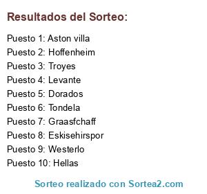 Lista de participantes: Hellas, Levante, Troyes, Eskisehirspor, Hoffenheim, Dorados, Graasfchaff, Westerlo, Tondela, Aston villa.