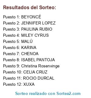 Lista de participantes: Christina Rosenvinge, SORAYA, KARINA, CELIA CRUZ, JULIETA VENEGAS, XUXA, GLORIA TREVI, EDURNE, AlLASKA, ISABEL PANTOJA, CHENOA, SELENA QUINTANILLA, GLORIA STEFAN, ROCIO DURCAL, THALIA, ANA TORROJA, DONNA SUMMER, PAULINA RUBIO, MALÚ, MILEY CYRUS, JENNIFER LOPEZ, MARTA SANCHEZ, BEYONCÉ, LAURA PAUSINI.
