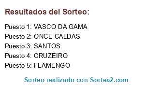 Lista de participantes: SANTOS, VASCO DA GAMA, FLAMENGO, ONCE CALDAS, CRUZEIRO.