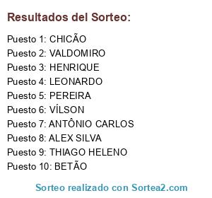 Lista de participantes: CHICÃO, THIAGO HELENO, VÍLSON, VALDOMIRO, LEONARDO, PEREIRA, HENRIQUE, BETÃO, ANTÔNIO CARLOS, ALEX SILVA.