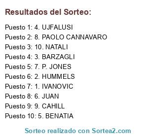 Lista de participantes: ROLANDO , VERMAELEN, HUMMELS, LUGANO, RAUL ABIOL, RANOCCHIA, AGGER, ALEX, BARZAGLI, DEDE, .