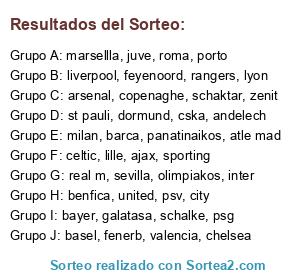 Lista de participantes: united, city, liverpool, chelsea, arsenal, inter, milan, juve, roma, atle mad, real m, valencia, barca, sevilla, bayer, dormund, schalke, st pauli, rangers, celtic, ajax, feyenoord, psv, psg, marsellla, lyon, lille, benfica, porto, sporting, schaktar, cska, zenit, panatinaikos, copenaghe, olimpiakos, fenerb, galatasa, andelech, basel.