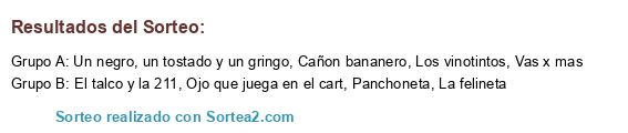 Lista de participantes: Vas x mas, Un negro, un tostado y un gringo, La felineta, Los vinotintos, El talco y la 211, Panchoneta, Cañon bananero, Ojo que juega en el cart.